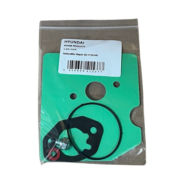 Carburettor Repair Kit Y170/145 for a Selection of Hyundai MachinesOEM replacement part.Please check the right-hand side of this page for a full list of compatible machines.Before purchasing we recommend that you check the exploded view diagram with the diagram reference provided on this listing to be sure you have selected the part you need.At a Glance:Carburettor Repair Kit Y170/145 - for a selection of Hyundai machinesPart Number - 1361045OEM PartDiagram Reference(s) Per Model - P4600SP/P5100SPE/HWSW1000Unsure if this is the correct part for your machine?Please use Live Chat, leave a message or call 01646 687880 for assistance and expert advice.